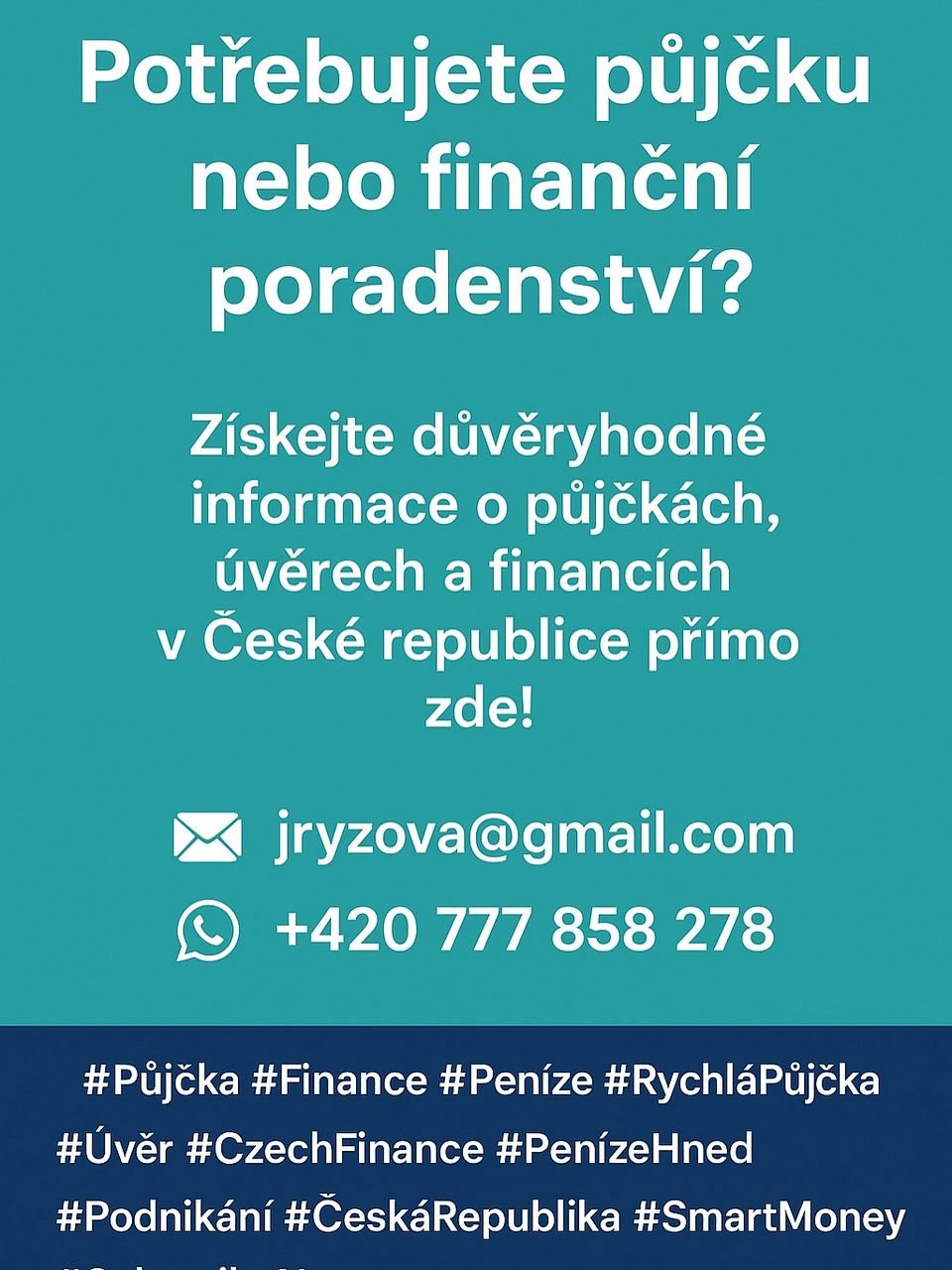 Tváří v tvář vašim finančním problémům vždy existují řešení. Nabízíme rychlý a snadný způsob, jak získat až 95 000 000 Kč pro každého, kdo je schopen splatit s úrokovou sazbou 2 centů za jakoukoli požadovanou částku. Pokud opravdu potřebujete půjčku, zkuste mě kontaktovat na emailu: vincourovajana5@gmail.com WhatsApp: +420 777 858 278